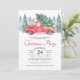 Invitation Fête de Noël avec un camion rouge à l'aquarelle ru
