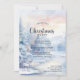 Invitation tes amis et ta famille à ta fête de Noël cette année avec cette invitation qui présente une scène hivernale avec des pins enneigés au bord d'un lac, et un cerf peut être vu entrer dans la clairière.
