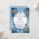 De beaux flocons de neige bleus et argentés dérivent autour d'un cadre ovale sur cette fabuleuse invitation de fête de vacances. Le dos est bleu clair dans une ombre complémentaire.