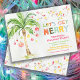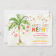 Joyeux avec cette invitation de Noël sur le thème de la plage tropicale avec un palmier aquarelle, des ornements, des lumières de Noël et des polices amusantes. Idéal pour une île, une plage ou tout climat chaud Fête de Noël