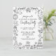 Invitez vos invités à votre fête de fin d'année avec cette invitation de Noël amusante, fantaisiste et festive. Le design présente des illustrations dessinées à la main tout autour des bords, notamment le Père Noël, des bonshommes de neige, des chaussettes, de la verdure, des ornements et d'autres icônes de Noël classiques, mélangés à des cocktails festifs et même une tour de champagne pour une ambiance de fête animée. Le centre garde les choses simples avec un script manuscrit associé à des polices propres, lui donnant l'apparence d'un mot écrit à la main.