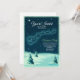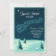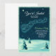 Une invitation à une fête de Noël avec une illustration vintage du Père Noël dans son traîneau tiré par ses rennes. Petites étoiles dans le ciel nocturne. Pins enneigés au sol. Ambiance rétro vintage.