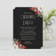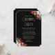 Invitation élégante de fête de Noël en noir, parfaite pour les fêtes de Noël, les soirées de vacances, les événements d'entreprise, les cocktails de vacances et plus encore. Personnalisez facilement cette invitation de fête attrayante mettant en vedette des botaniques hivernales de poinsettia blanc, de houx aux baies rouges, de branches de conifères et de petites étoiles avec les détails de votre fête.