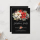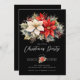 Cette élégante invitation de fête de Noël présente une belle branche de pin, des fleurs de poinsettia rouges et blanches et des baies sèches posées sur un arrière - plan noir. L'invitation est parfaite pour inviter vos amis et votre famille à un rassemblement festif. L'ensemble est festif et sophistiqué, et l'invitation impressionne vos invités.