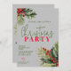 Invitation à Noël festive Holly et pine grey avec un magnifique spray de baies sainte, rouge et pin sur l'invitation à la fête pour une fête de Noël festive.