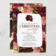 Invitation vos invités de fête de vacances et les invités de la fête de Noël dans le style avec ce thème classique riche audacieux invitation de fête rose. Le design se compose d'une roseraie rose douce, incrustée de roses rouges rubis. Personnalisez avec votre nom de famille et tous les détails de votre fête. Un design de Noël gai et luxueux est prêt pour votre personnalisation.