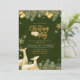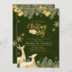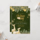 Invitation de rennes de Noël et de flocons de neige. Invitations amis et famille à une fête de Noël festive avec cette élégante invitation en or et vert. Composé de rennes, de flocons de neige et de branches de pins, il donne le ton parfait pour un rassemblement de vacances. Pour fêter la saison décembre dans le style. Customisez facilement avec vos informations de fête.