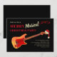 Célébrez Noël avec de la musique, de la joie et des rires avec cette invitation moderne de fête de vacances musicales à la guitare. Guitare électrique à flamme cool portant un chapeau de Père Noël avec une typographie festive et des notes de musique sur un fond noir. Facile à personnaliser à l'aide du modèle pour toute fête rock and roll festive pour les amis de la famille ou un événement de bureau d'entreprise, surtout s'il y a de la musique en direct. Œuvre originale de l'artiste Catherine Sweetman