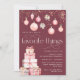 Des amis Invitations à une fête de Noël ou de vacances sur le thème des choses favorites avec cette invitation élégante et festive, avec des illustrations d'aquarelle dans les tons doux de rose pâle sur un riche arrière - plan de prune de sucre. Les détails de votre fête préférée sont surmontés d'une guirlande d'aquarelles rose vif et d'ornements en bauble, et flanqués d'une pile de cadeaux de Noël emballés. Personnalisez avec les détails de votre fête, y compris des instructions pour vos invités sur le nombre de cadeaux à apporter et leur valeur estimée.