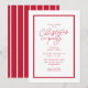 Invitez vos amis et votre famille à une fête de Noël classique avec cette simple invitation rouge et blanche comportant une bordure rouge, un texte "fête de Noël" en écriture cursive et un texte rouge simple pour tous les détails. Ce design festif fait partie d'une collection de Lea Delaveris Design et se coordonne avec des cartes, des fournitures de fête, du papier cadeau et plus encore. Le verso est un rouge assorti avec des rayures blanches en ligne ondulée. Célébrez la saison avec ce design festif et amusant qui est également disponible en téléchargement numérique d'invitation de fête de Noël.