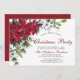 Invitation Fête de Noël Rouge Poinsettia Floral Aquarelle