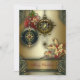 Cartes d'invitation de fête de Noël élégantes avec des ornements de sapin de Noël rouge, vert et or. Ces magnifiques ornements de sapin de Noël rouge, vert et or et ces invitations de fête de Noël avec du houx sont facilement personnalisables pour votre événement en ajoutant simplement vos détails dans le style de police, la couleur et le libellé de votre choix.