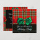 INVITATION FÊTE DE NOËL RUBANS VERTS ET TARTAN ÉCOSSAIS ROUGE