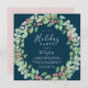 Cette carte d'invitation pour fêtes de Noël verte couronne marine est parfaite pour un événement de vacances simple. Le design des vacances d'hiver est composé d'eucalyptus vert sauge doux et de plantes modernes avec des sprigs de baies rouges classiques.