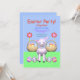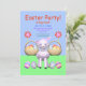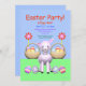Une invitation à une fête de Pâques et une chasse aux œufs avec mon image de paniers de Pâques colorés, d'œufs peints et d'un personnage d'agneau mignon.