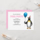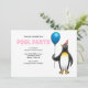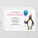 Invitation à la fête de la piscine d'anniversaire de l'été. Il est adapté aux enfants et a une illustration amusante avec un pingouin qui sont prêts pour la fête.