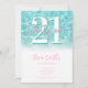 Fête de piscine d'été moderne invitation 21ème anniversaire avec élégante typographie de script de calligraphie et design minimaliste en bleu, blanc et rose.