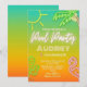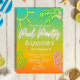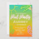 Cette invitation est inspirée par des enseignes néon avec différentes couleurs tropicales utilisées en arrière-plan pour donner une sensation de vibrations estivales amusantes et cool