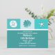 Cette amusante invitation à la fête sur la plage comprend des coquillages et une étoile de mer et un texte personnalisable sur un arrière - plan turquoise et blanc.