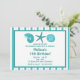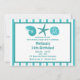 Cette amusante invitation à la fête sur la plage comprend des coquillages et une étoile de mer et un texte personnalisable sur un arrière - plan rayé turquoise et blanc.
