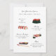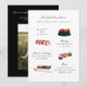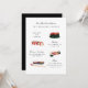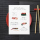Invitation au dîner de fiançailles avec illustrations originales de sushi sur fond de couleur modifiable. Photo au dos facultative avec zone pour site web ou code QR ; outil "éléments" zazzle utilisé sur le côté gauche pour générer votre code QR.