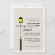 Elégante invitation Lamp Post avec un lampadaire éclairé avec un panneau suspendu, où le texte peut être customisé. Idéal pour une fête de ménage dans votre nouvelle maison. © Matin 6