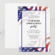 Cette invitation de fête de remerciement client présente un thème patriotique accentué par un fond de drapeau américain abstrait. C'est parfait pour un événement du 4 juillet.