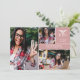Cette invitation moderne pour une fête de remise de diplôme en soins infirmiers peut être personnalisée avec vos 3 photos spéciales de diplômé et les détails de la célébration sur un fond rose dusty rose. Conçue par Thisisnotme©