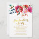 Cartes d'invitation de fête de remise de diplômes élégantes avec un fond blanc classique, un joli décor floral à l'aquarelle rose et rouge, un titre typographique à la feuille d'or faux stylé et un modèle de fête de diplômé moderne.