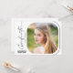 Cette invitation de fête de remise de diplômes avec écriture moderne présente un design minimaliste accentué par un texte style écriture manuscrite sur fond blanc. Le verso offre un texte personnalisable pour que vous puissiez ajouter les détails de votre invitation de fête sur un fond blanc.