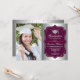 Invitation à une fête de remise de diplômes avec votre photo. Caractéristiques police de caractères script, pompon et confettis. Élégant design bordeaux marron avec faux argent pailleté. Parfait pour une célébration élégante.