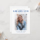 Une invitation à une remise de diplômes simple et épurée avec des détails au verso. Ce design présente un grand texte avec le nom de l'étudiant au-dessus d'une photo de portrait du diplômé.