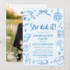 Elle l'a fait ! Célébrez cette réalisation incroyable avec un style moderne et audacieux grâce à cette invitation de fête de remise de diplôme bleue "She Did It" à dessin moderne. Avec des icônes de gribouillis ludiques, une typographie manuscrite tendance et des accents bleus confiants, ce design allie une personnalité amusante à une élégance contemporaine et épurée ✨ Les casquettes de remise de diplôme, les livres, les nœuds et les détails de style esquisse ajoutent une touche fantaisiste tout en gardant la mise en page soignée et prête pour les photos. Parfait pour les diplômés du lycée, de l'université ou de l'université, ce design de fête de remise de diplôme donne le ton pour une célébration fière remplie d'excitation, de rires et de moments inoubliables