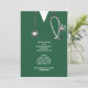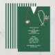 Cartes d'invitation ou faire-part de fête de fin d'études créatifs pour l'école d'infirmières avec des uniformes de travail verts, un couteau suisse drôle et des illustrations de stéthoscope.