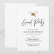 Invitation à la fête de remise de diplômes noir et blanc à script simple avec un capuchon en feuille d'or élégant et une typographie minimaliste. Cliquez sur le bouton d'édition pour personnaliser ce design. Ajoutez facilement une photo au verso.
