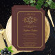 Un design élégant de bannière déroulante et de cadre festonné de ton or et marron pour invitation de fête de remise de diplômes pouvant être personnalisé pour les remises de diplômes de lycée, d'université ou d'école professionnelle. Conception de Holiday Hearts Designs (tous droits réservés).