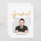 Célébrez votre diplômé avec cette invitation de remise de diplôme simple et moderne avec photo, conçue en noir et blanc, avec une photo centrale et le mot "Diplômé" en écriture moderne FAUX Or. Cette invitation épurée est parfaite pour un diplômé masculin comme votre fils qui est diplômé de l'université ou du collège.