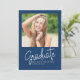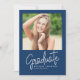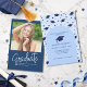 Célébrez le grand événement de votre diplômé avec style grâce à cette invitation de fête de remise de diplômes élégante et moderne. Avec un fond rayé bleu et blanc intemporel, des accents charmants de casquette de diplômé et un panneau central doux, ce design combine joliment des éléments classiques et contemporains. L'invitation présente une mise en page propre et sophistiquée avec une typographie de script élégante associée à un texte clair et facile à lire pour tous les détails de l'événement. Personnalisez-la avec le nom de votre diplômé, l'année de promotion et les informations sur la fête pour créer un souvenir vraiment spécial pour la famille et les amis. Parfaite pour les célébrations de fin d'études secondaires ou universitaires, cette invitation donne le ton pour un événement mémorable tout en se coordonnant sans effort avec la décoration de fête assortie.