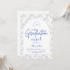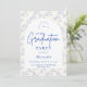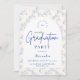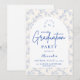 Un design élégant pour une célébration de remise de diplôme, doté d'une délicate bordure florale en toile de fond bleu inspirée de la porcelaine européenne classique et des gravures botaniques vintage. Les florales complexes encadrent un panneau central arqué et épuré, créant une composition raffinée et intemporelle qui met en valeur le nom du diplômé et les détails de l'événement de manière magnifique. Les tons bleus doux sur un fond ivoire net donnent au design une atmosphère sophistiquée et festive. Parfait pour une réception de remise de diplôme élégante avec une esthétique classique et romantique.