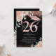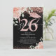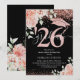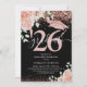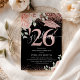 Invitation de fête de remise des diplômes rose et or rose chic et féminine, avec des fleurs aquarelles pastel, de la verdure de succulentes et des paillettes or rose. Le modèle élégant est conçu sur fond noir, ce qui fait ressortir les fleurs roses ! L'année de promotion est surmontée d'une toque et du texte 'diplômé' en écriture calligraphique élégante. Il suffit de personnaliser le modèle avec vos propres informations d'événement.