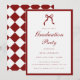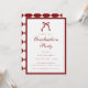 Invitation à la fête de remise des diplômes élégante avec nœud papillon rouge vin. Une invitation de fête de remise des diplômes sobre, classique et formelle rouge vin et blanc, conçue avec une typographie script, un nœud et un motif à carreaux au verso. Personnalisez avec le nom du diplômé, l'année de remise des diplômes, les informations de RSVP et d'autres détails pour votre célébration.