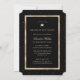Invitation élégante de fête de remise des diplômes en noir et or avec photo à l'intérieur d'un cadre étoilé avec une police de caractères script moderne.