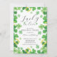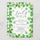 Invitation moderne et amusante de fête de répétition de Chanceux en Amour Irlandaise avec un beau cadre de trèfle à quatre feuilles avec des fers à cheval dorés.