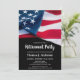 Cartes d'invitation de retraite de la police avec drapeau américain - Célébrez des années de service dévoué et invitez vos amis et votre famille à votre fête de retraite des forces de l'ordre avec cette invitation de retraite de la police avec drapeau américain - Dessin du drapeau américain sur fond noir. Cette invitation de retraite pour policier est également parfaite pour les invitations de remise de diplôme à l'académie de police, les invitations de retraite militaire, changement de lieu dans la personnalisation. Consultez notre collection pour des cadeaux de retraite de policier, des cadeaux de remise de diplôme de policier, des faveurs de fête et des fournitures assorties. COPYRIGHT © 2021 Judy Burrows, Black Dog Art - Tous droits réservés. Invitation de fête de retraite de la police avec drapeau américain patriotique.