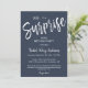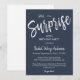 Créez une invitation de fête surprise personnalisée. Cette invitation de fête comporte une écriture calligraphique spacieuse et magnifique avec un fond bleu marine. Vous pouvez facilement la personnaliser avec votre propre texte et la modifier à votre goût. Veuillez noter : "Chut..." et "Surprise" ne peuvent pas être modifiés.