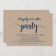 Belle fête de rêve, Carte d'annonce / invitation de mariage en fuite, dans un design Kraft de ferme rustique, Kraft Brun, Police Navy Blue. C'est parfait pour votre réception de mariage et votre fête de célébration post-mariage. Ajoutez vos détails dans la police / lettrage correspondant.