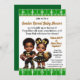Préparez-vous à donner le coup d'envoi de l'excitation avec cette invitation de révélation du sexe sur le thème du football ! Avec un adorable bébé footballeur en maillot noir et or et une adorable bébé pom-pom girl en uniforme de cheerleading noir et or assorti, cette invitation est la façon parfaite de célébrer votre arrivée prochaine. La conception de terrain de football et le texte ludique ajoutent une atmosphère sportive et de jour de match pour les parents et les invités qui aiment le football.