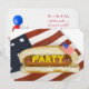 Moutarde sur hot dog avec drapeau américain pour la fête des vacances d'été.