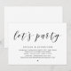 Thème de script noir moderne, carte d'invitation d'élopement de mariage (Faisons la fête). C'est parfait pour votre réception d'élopement de mariage / fête de célébration post-mariage. Ajoutez vos détails dans la même police / lettrage noir.