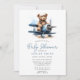 Préparez-vous à célébrer avec cette adorable invitation à la fête d'enfant Teddy Bear Airplane. Avec un ours en peluche aquarelle habillé en petit aviateur sur un avion bleu vintage, cette invitation est parfaite pour une fête d'enfant garçon avec un thème aventureux. Les couleurs douces et le design charmant en font un choix charmant pour les parents qui attendent un petit garçon prêt à s'envoler.